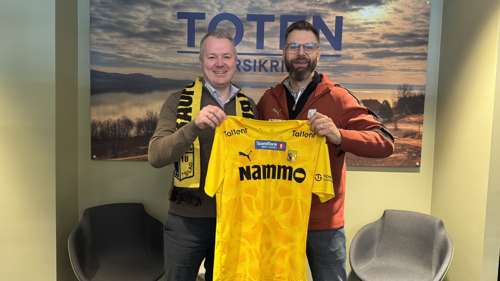 Raufoss Fotball kan med glede meddele at klubbens sponsoravtaler med fire sentrale samarbeidspartnere er forlenget. På bildet ser vi Toten Forsikrings Raymond Skaugerud sammen med Mats Thyli samarbeidspartnere