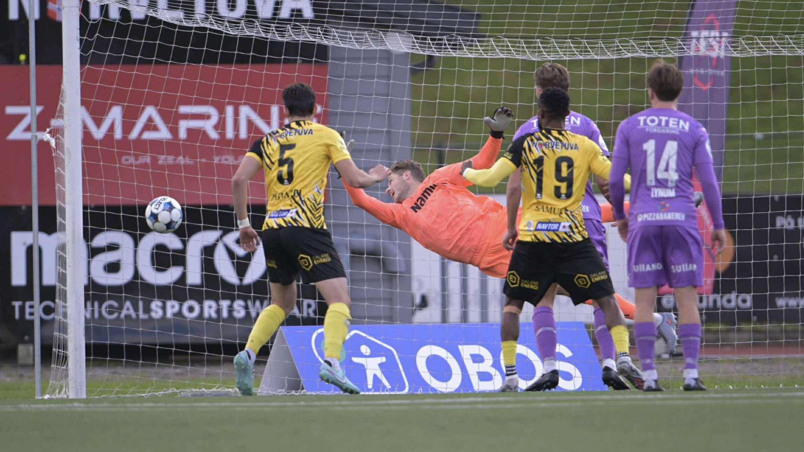 Minutter seinere fikk Lynum sjansen til å redusere, men skuddet fra drøye 16 meter strøk stolpen på utsida.