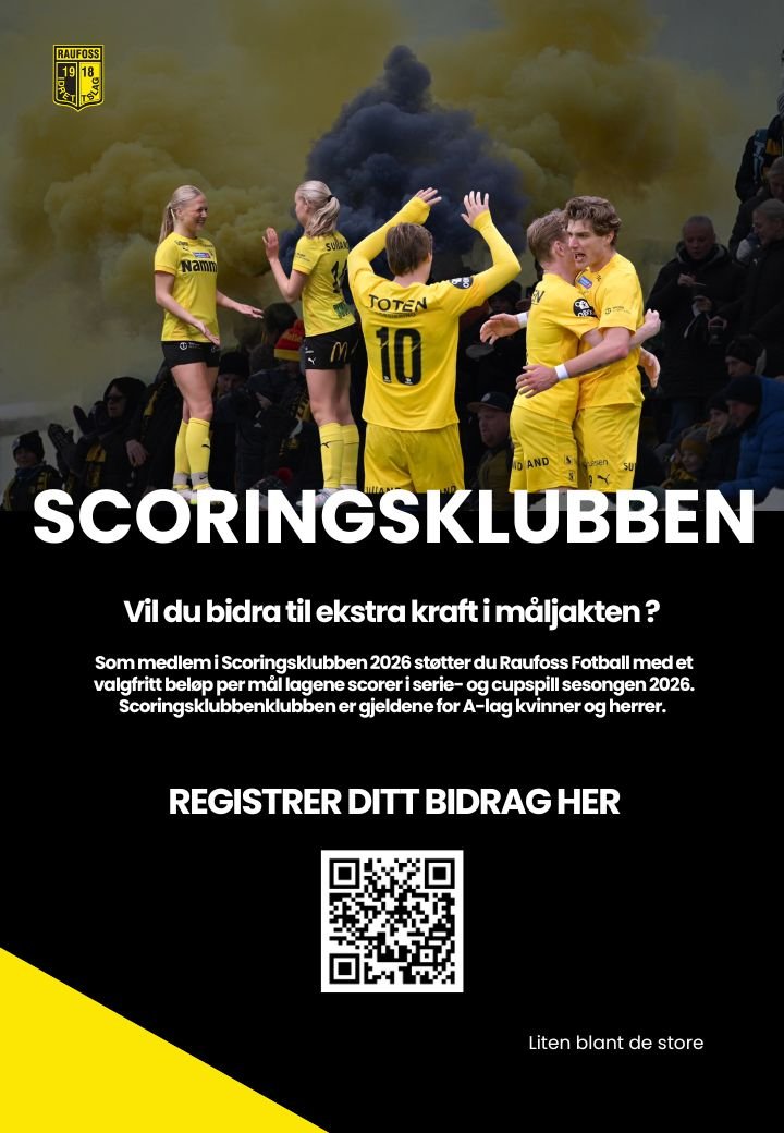 Flere har allerede meldt seg inn i Scoringsklubben 2026, og engasjementet rundt Raufoss Fotball fortsetter å øke. Nå håper vi enda flere vil bli med på laget og bidra til en spennende sesong!