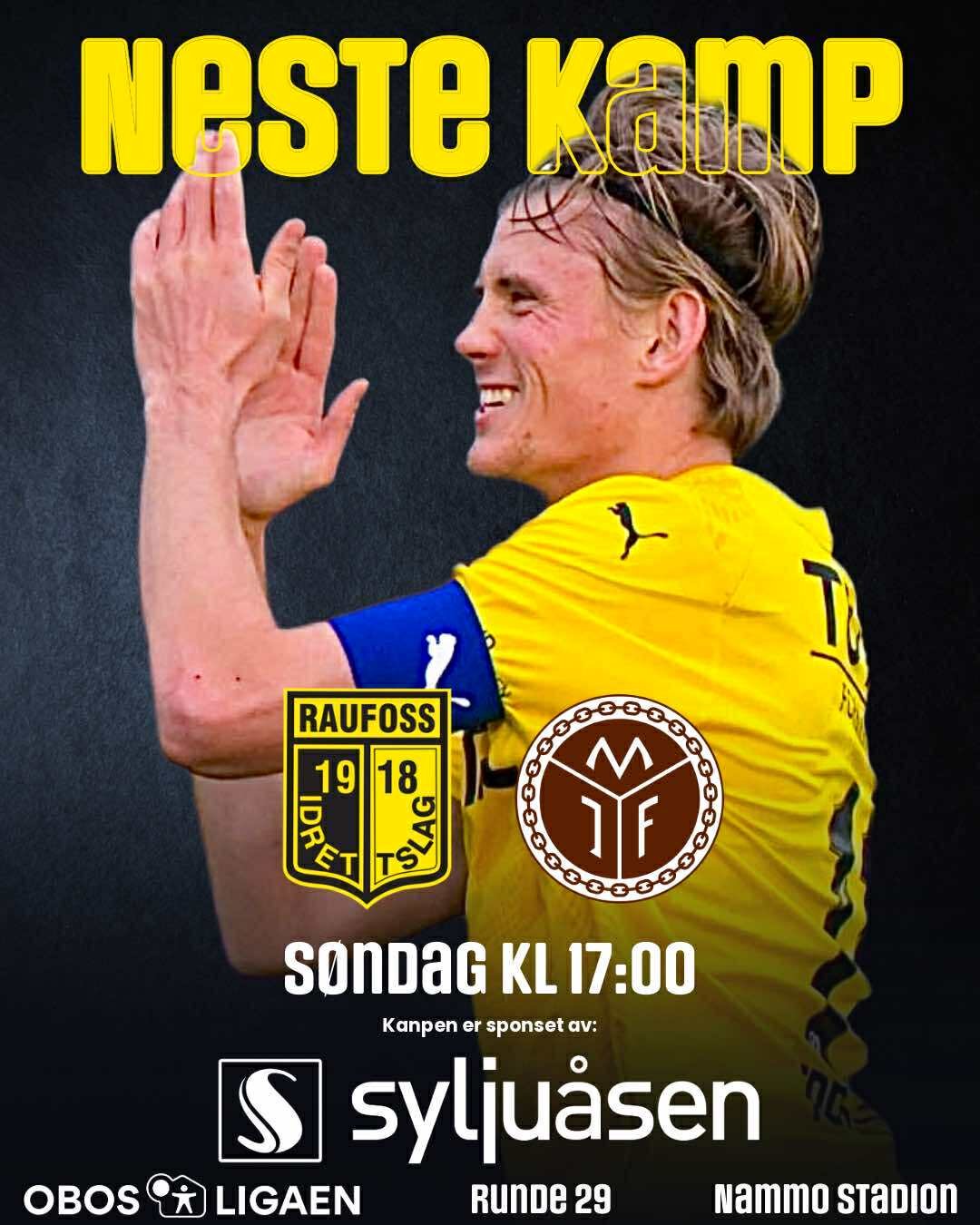 Raufoss kjemper for å sikre plassen i OBOS-ligaen uten å måtte ut i kvalifisering. Mjøndalen, på sin side, kjemper desperat for å klatre inn på nettopp den kvalikplassen. Det betyr én ting: Dette blir en kamp der hver duell, hver meter og hvert sekund teller.